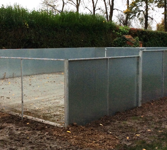 A 10m x 5m galvanised sheeted enclosure with double gated entrance way and 2 x Perspex viewing panels. We had these custom fabricated to suit the concrete pad already in place, then attended and fitted on site in a day.
